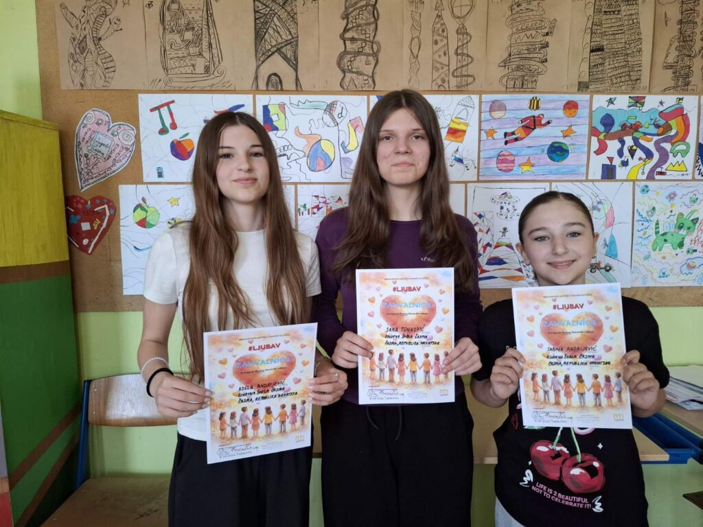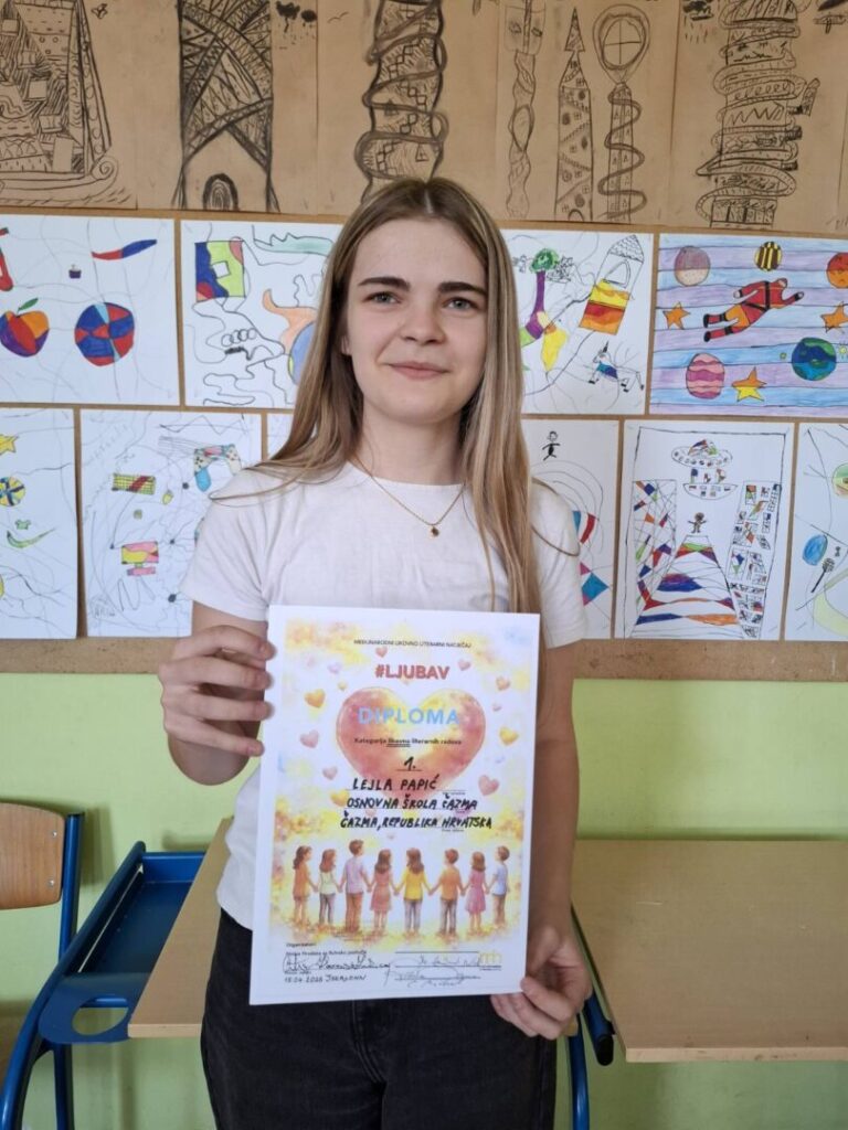 Čestitke našoj Lejli i njezinoj mentorici, učiteljici Ivani Barišić Tomšić. Ostali učenici su za svoje likovne ostvaraje na zadanu temu dobili zahvalnice za sudjelovanje.