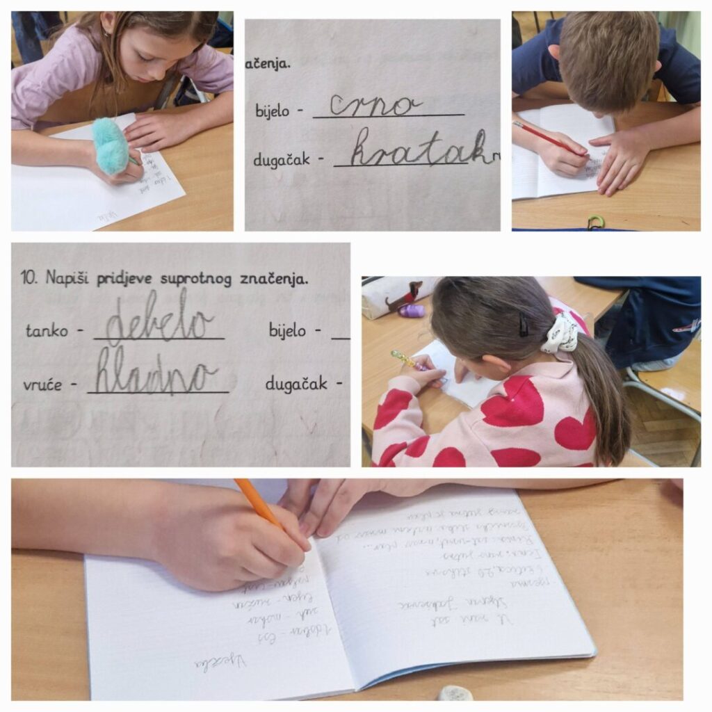 Taj dan u 3.b razredu obilježili smo raznim aktivnostima: pisali smo suprotne pridjeve, oblikovali suprotne rečenice (jesne/niječne rečenice), zadatke iz matematike rješavali obrnutim redoslijedom – od zadnjeg do prvog, učenici su sjedili na okrenutim stolicama, na satu Tjelesne i zdravstvene kulture izvodili smo vježbe suprotno od uobičajenog načina, pokušali pisati suprotnom rukom… Bilo nam je zanimljivo i smiješno…