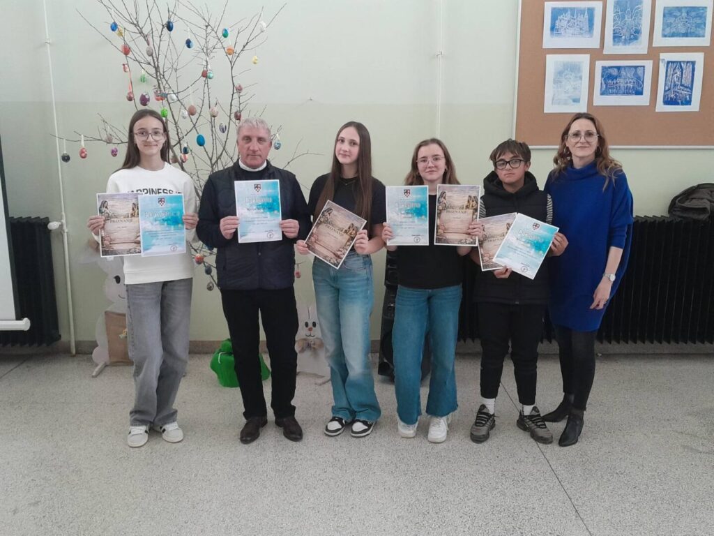 Učenici naše škole Iva Dianić (8.c), Mateo Ritinger (8.c), Marija Novaković (7.c) i Diva Ravlić (6.b) osvojili su prvo mjesto te će predstavljati našu Biskupiju na državnoj razini natjecanja.