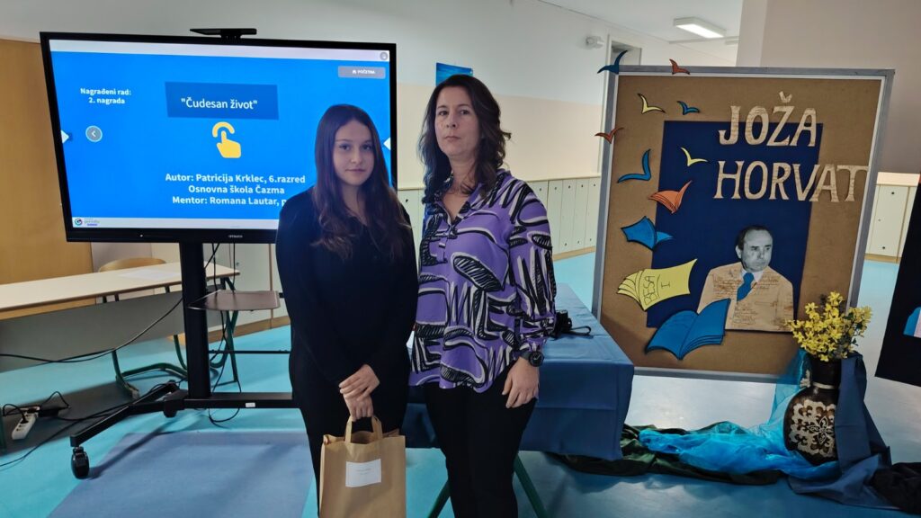 Učenici i njihove mentorice, učiteljica hrvatskog jezika Nikolina Huđber Mesar i školska knjižničarka Romana Lautar sudjelovali su na svečanom otvorenju izložbe učeničkih radova i dodjeli nagrada u Osnovnoj školi Jože Horvata u Kotoribi.
